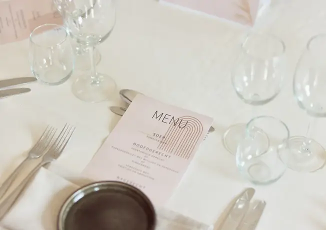 Ontdek onze menu’s vanaf €71,50 p.p., bereid met seizoensproducten en een stijlvolle, ambachtelijke afwerking.
