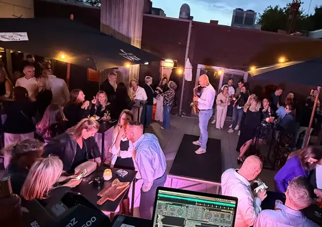 Op het dakterras geniet je van DJ, eten en drinken à la carte van 17:00 tot 00:00.