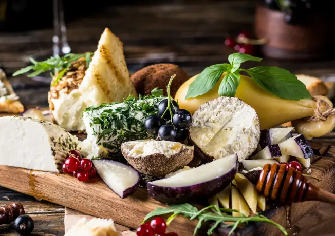 Voor €54 per persoon geniet je van een kaasbuffet aan tafel met aangepaste wijnen van 19:00 tot 22:00.