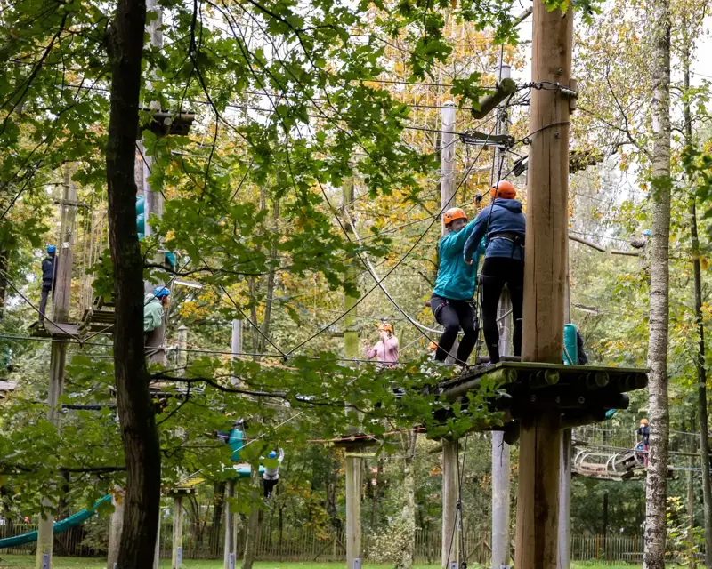 Notre parcours en hauteur est là pour surmonter d'éventuelles peurs, avec les collègues. Vous commencez à 5 mètres. Osez-vous aller jusqu'au deuxième niveau, alors vous irez jusqu'à 10 mètres !