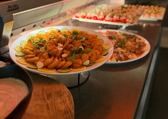 Geniet onbeperkt van een uitgebreid buffet met smaakvolle gerechten, een frisse saladebar, warme hoofdgerechten en een verleidelijk dessertbuffet. Ook frisdrank, wijn en tapbier zijn inbegrepen.